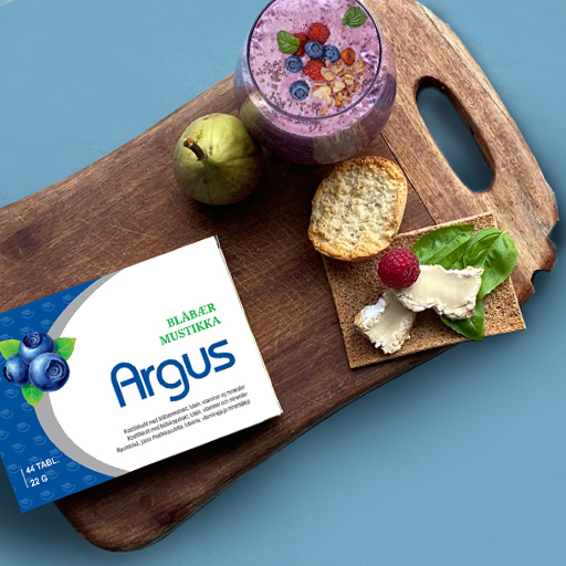 En Argustablett inneholder samme mengde antocyaniner som en håndfull blåbær (20-40 bær, avhengig av størrelsen på bærene).
